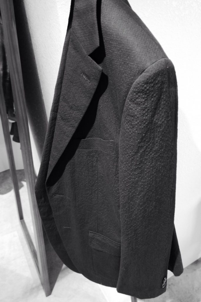 シックなトラディショナル感をだすなら、ストライプや無地のサッカー地。全体にコンサバティブな印象なら、ネイビーのウールフレスコ等々。それぞれにコーディネイト方法があるけど、気にしなきゃいけないのは、シワ感で統一するのか?アイロン、プレスした感じでまとめるのか?もっと大事なのは着用する本人の顔の表情と姿勢かな。夏のジャケットはヤセガマンが必要。
