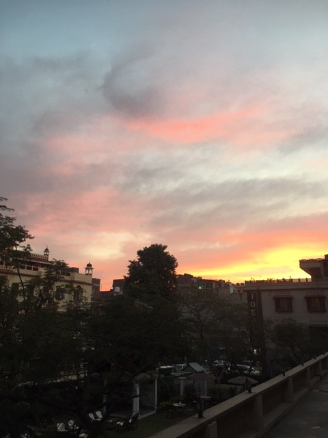 デリーからジャイプールへ。写真はジャイプールの朝焼け。 デリーとジャイプールの街...