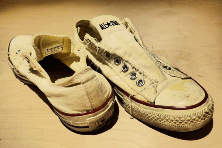 ここ数年気に入って履いている紐無しコンバース。ベロとアッパーをゴムでつなぎ留めた...